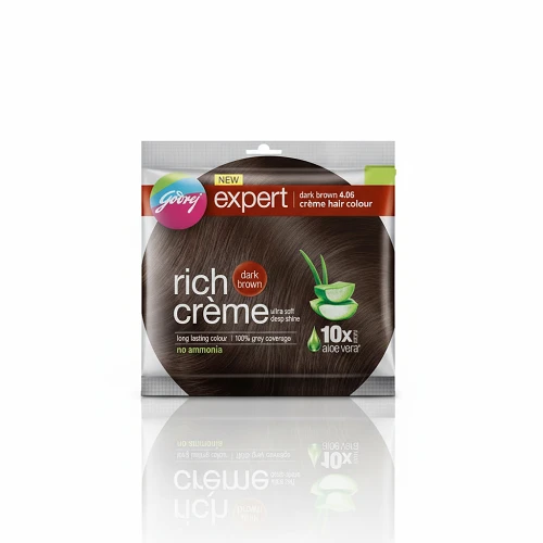 Achieve beautiful, rich hair color with the convenience of Godrej Expert Rich Crème. Unlike traditional hair dyes, this unique formulation is ammonia-free and pre-measured, making it incredibly easy to mix and apply. Enriched with Aloe Vera and Milk Protein, it not only gives you a stunning, vibrant color but also leaves your hair feeling soft, shiny, and nourished. The long-lasting formula ensures 100% grey coverage, so you can enjoy your new look for weeks to come. Say goodbye to messy applications and hello to a quick, beautiful transformation.
